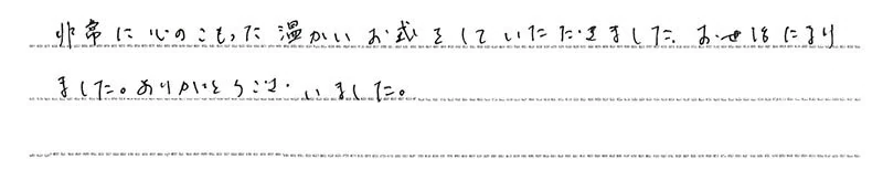 非常に心のこもった温かいお式をしていただきました。お世話になりました。ありがとうございました。